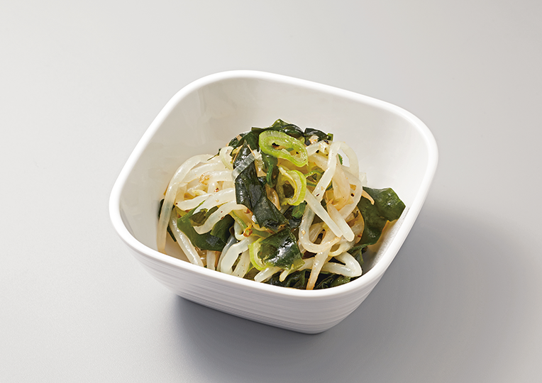 Boiled bean sprouts seaweed and leek with salt based sauce